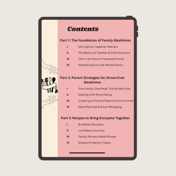 Mealtime doesn’t have to be stressful. The Family Table is a complete digital guide (delivered as a PDF ebook) that helps families nourish their kids with ease. It combines gentle, science-based advice with simple, delicious recipes everyone will enjoy.